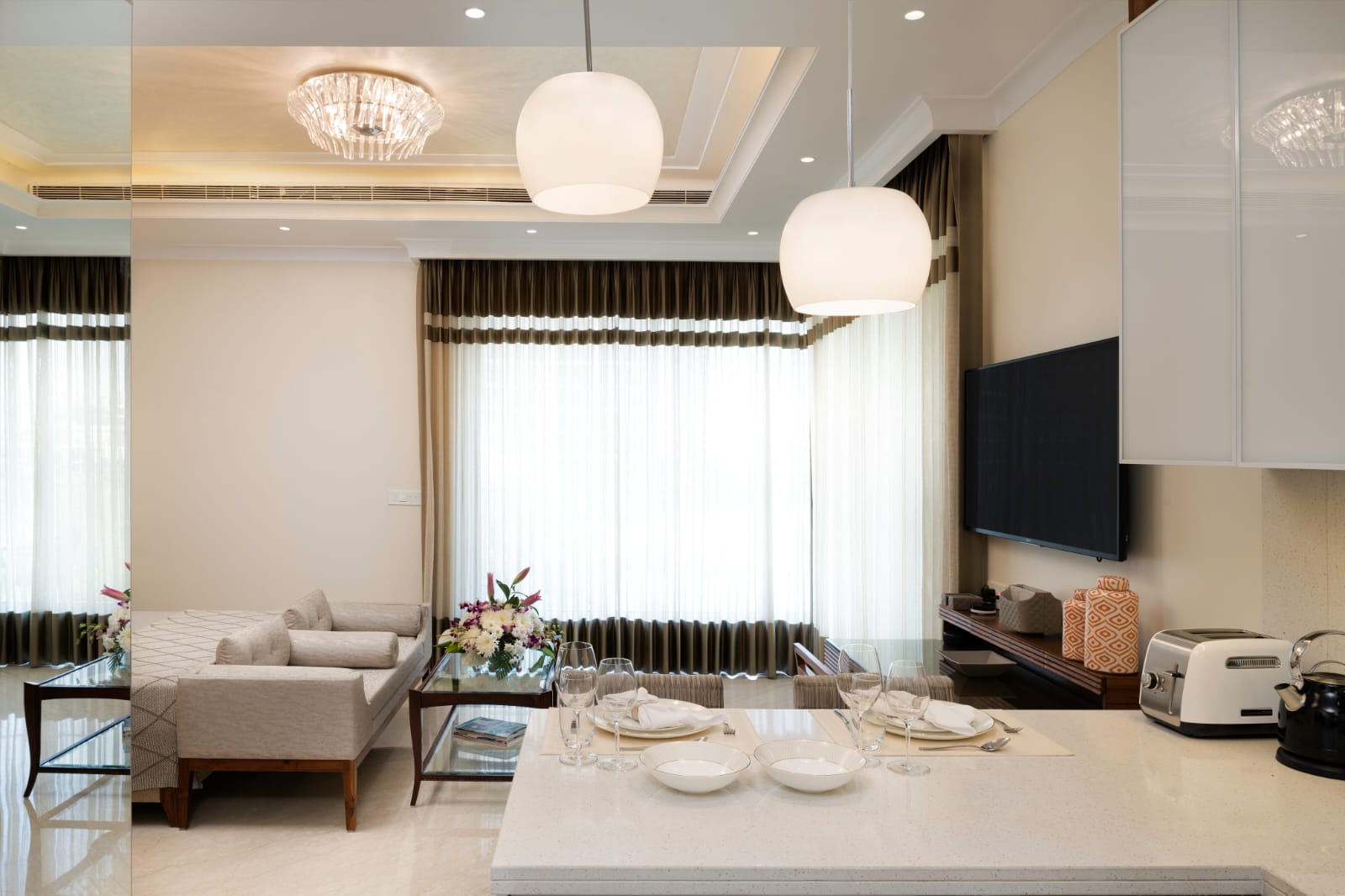 Fully-Furnished, Fully-Serviced, One Bed and Studio Residences thoughtfully designed to inspire and impress. These residences imbibe bespoke luxury, grand interiors and expansive views complemented by impeccable hospitality services. Every second here is a moment of quietude and the only sound you hear is of your own reveries.